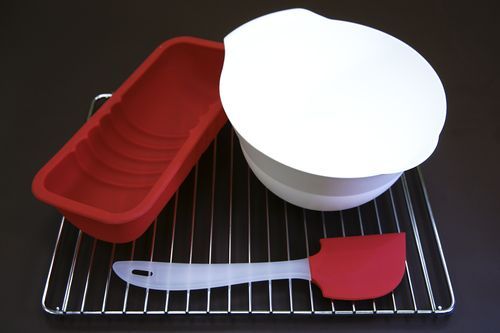1. Инвентарь: силиконовая форма, лопатка, пластиковая миска и металическая решетка.