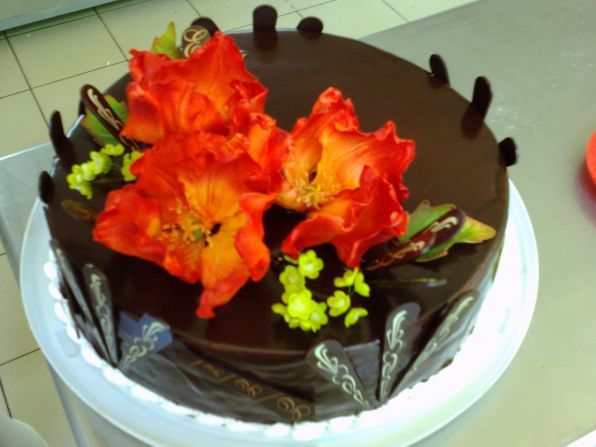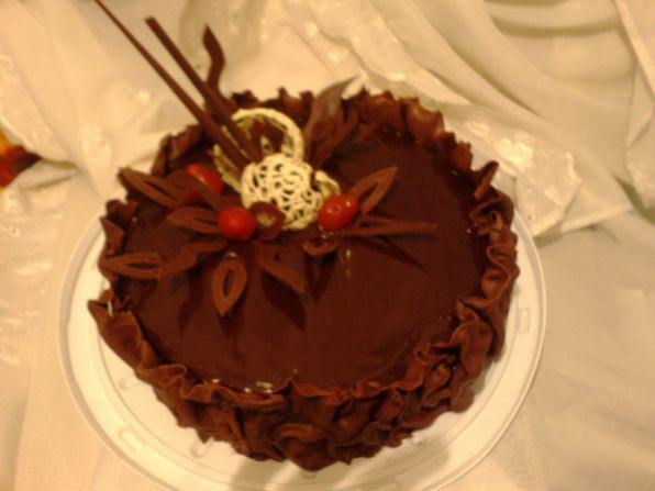 тортик мусс из черного шоколада с добавлением мяты и кусочки персика
