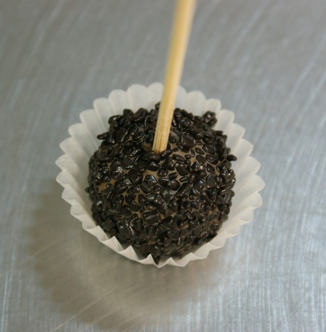 В итоге имеет место образования не сразу, а только через пару часов после охлаждения, ободков вокруг кусочков посыпки - поседение шоколада. Далее, если перенести конфеты в помещение с температурой 24-25 град. все следы поседения полностью пропадают.