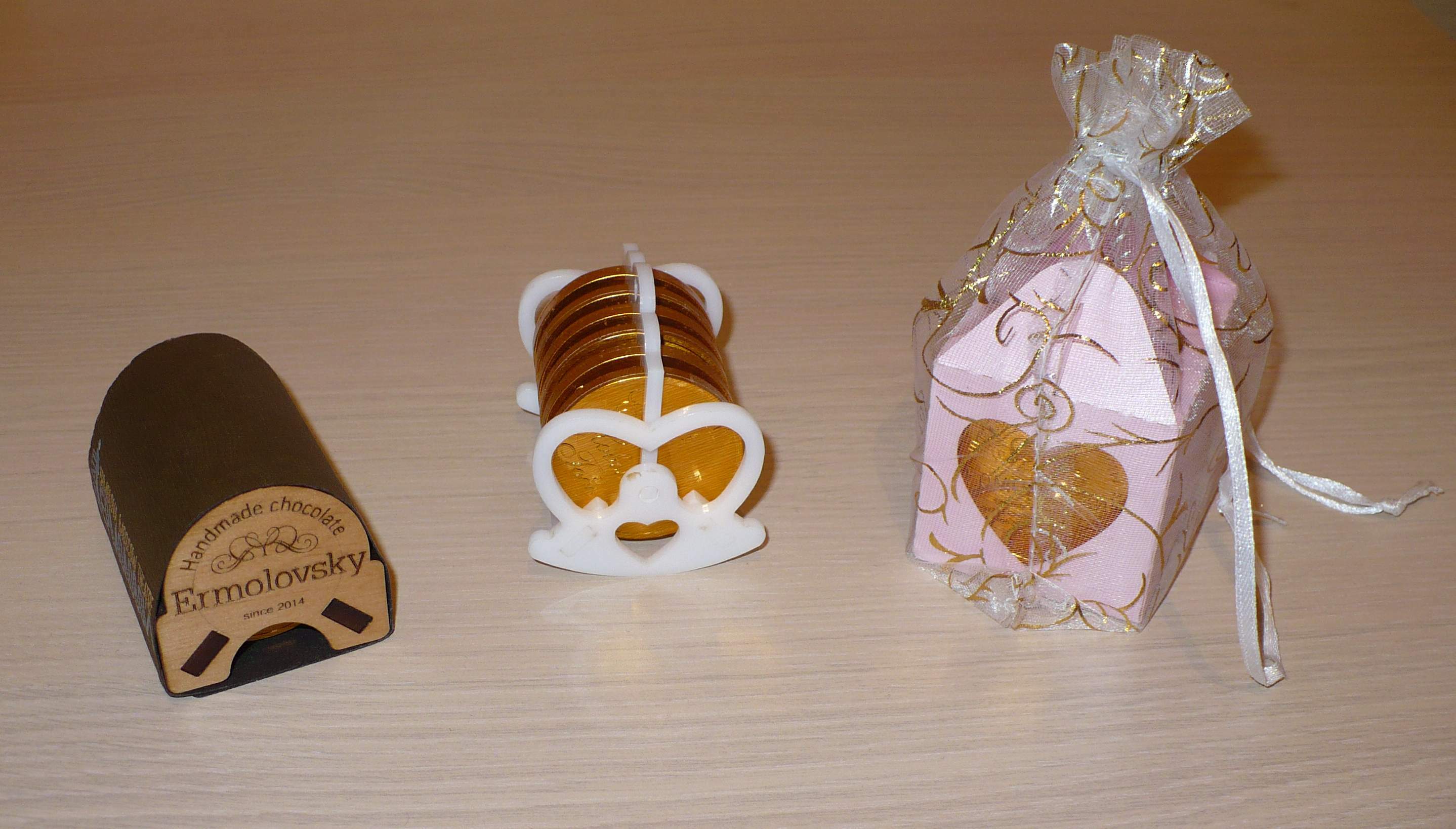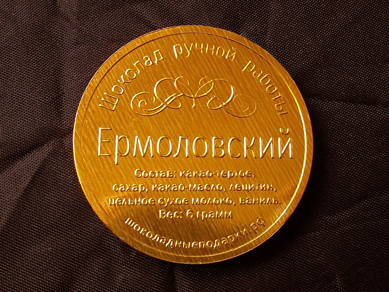 Мы занимаемся тем, что все время изготавливаем шоколадные монеты и медали с разными логотипами, поздравлениями, комплементами, датами, событиями.