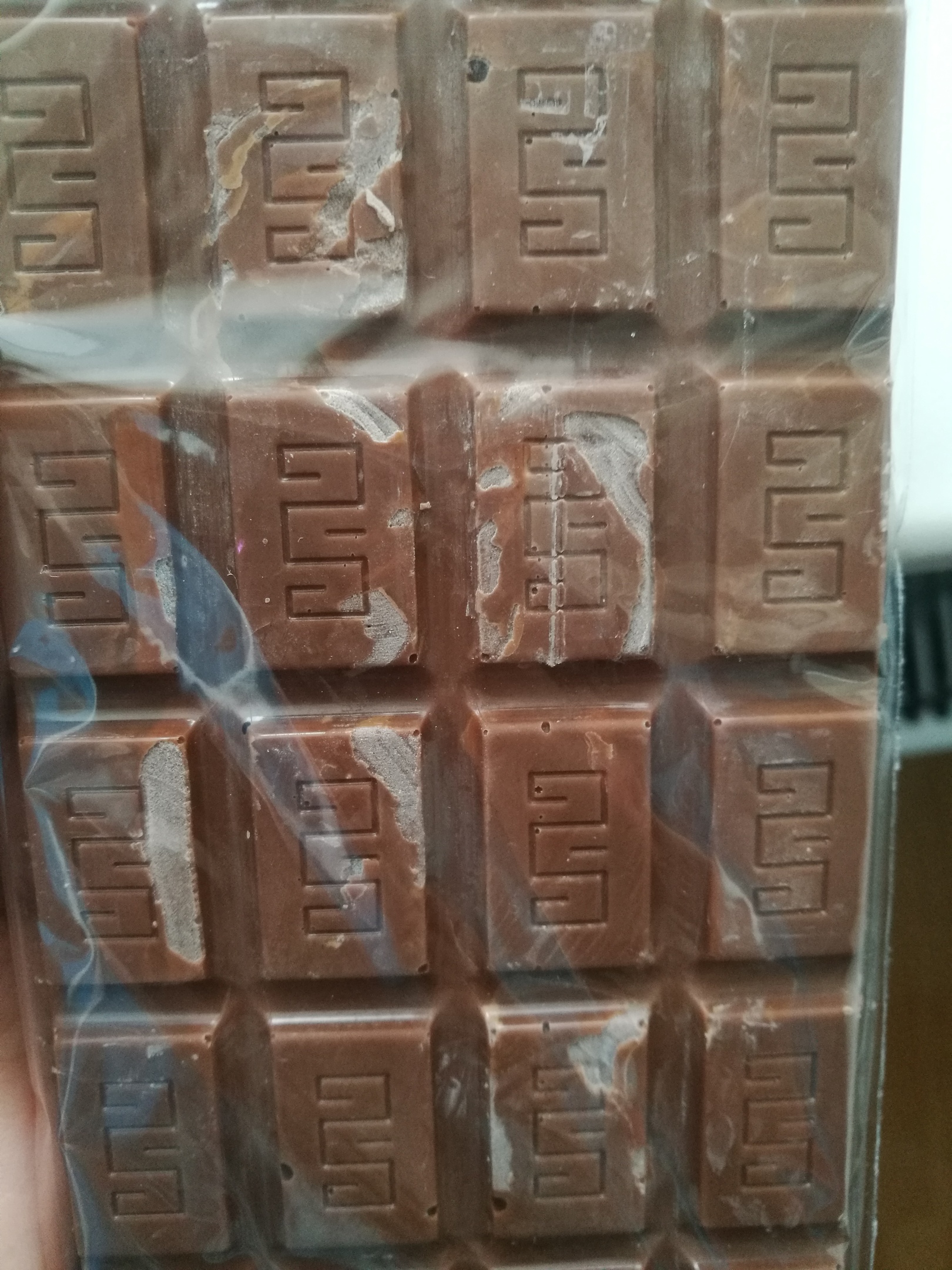 по зиме шоколад был превосходного вида, как только началась весна, все тает, влажность поднялась начали получаться такие шоколадки. белеют и будто отслаиваются, где отслаивается остается на форме. много партий попортила. не могу понять в чем дело. формы мою до скрипа, натираю спиртом. темперирую как и до этого всего. на кухне прохладно, но влажность поднялась, может в ней дело? помогите, уже не знаю, что делать((