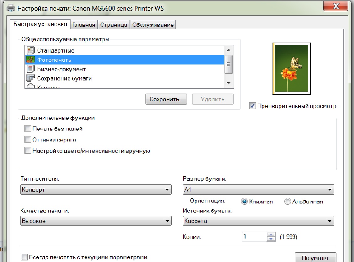 1. Выставляя конверт, вы не осуществляете собственно фото-печать. Вспоминая теорию, режим конверта в кэнонах означает три слоя нанесения краски на лист. А фото-печать - шесть слоёв. (На практике слои всегда можно увидеть глазами, прервав печать на половине фотографии, скажем, выдернув USB шнур). То есть, если вы печатаете конвертом, а ваш сосед-конкурент навострился печатать полноценную фото, то в яркости и качестве ваш оттиск будет безусловно проигрывать.