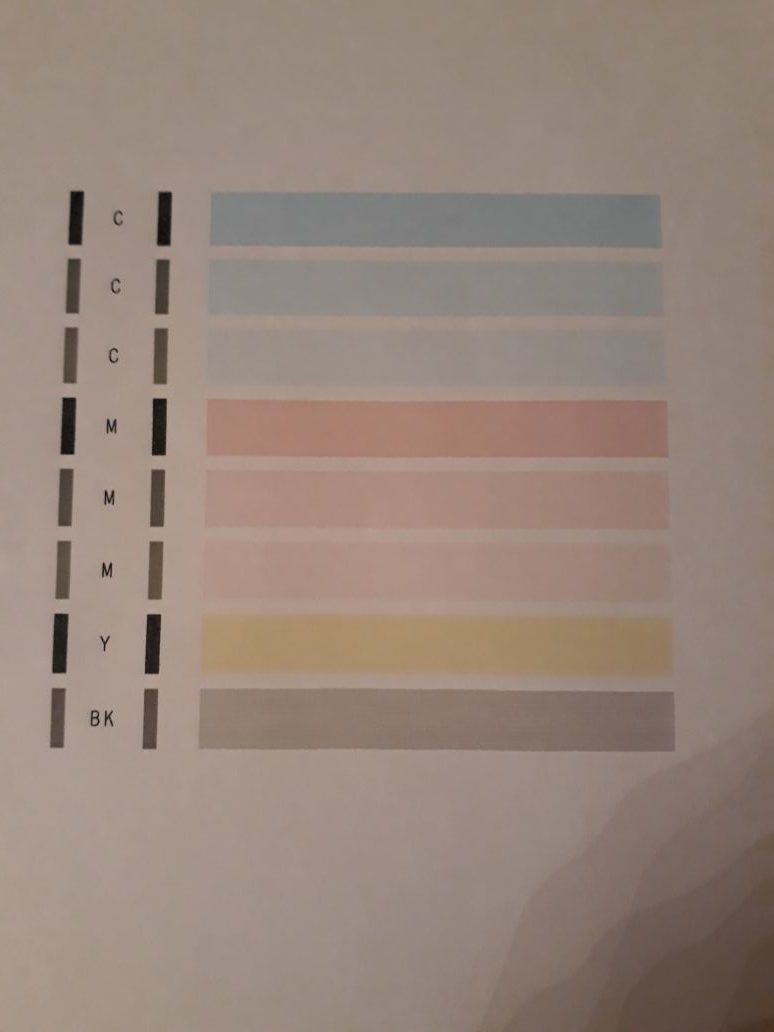 Принтер canon MG5640 засорены сопла, промываю, показывает что всё норм. Печатает хорошо пол листа и потом проблемы с чёрным цветом. Проверка показывает что сопла опять засорены при чём жёстко половина сетки нет по середине.