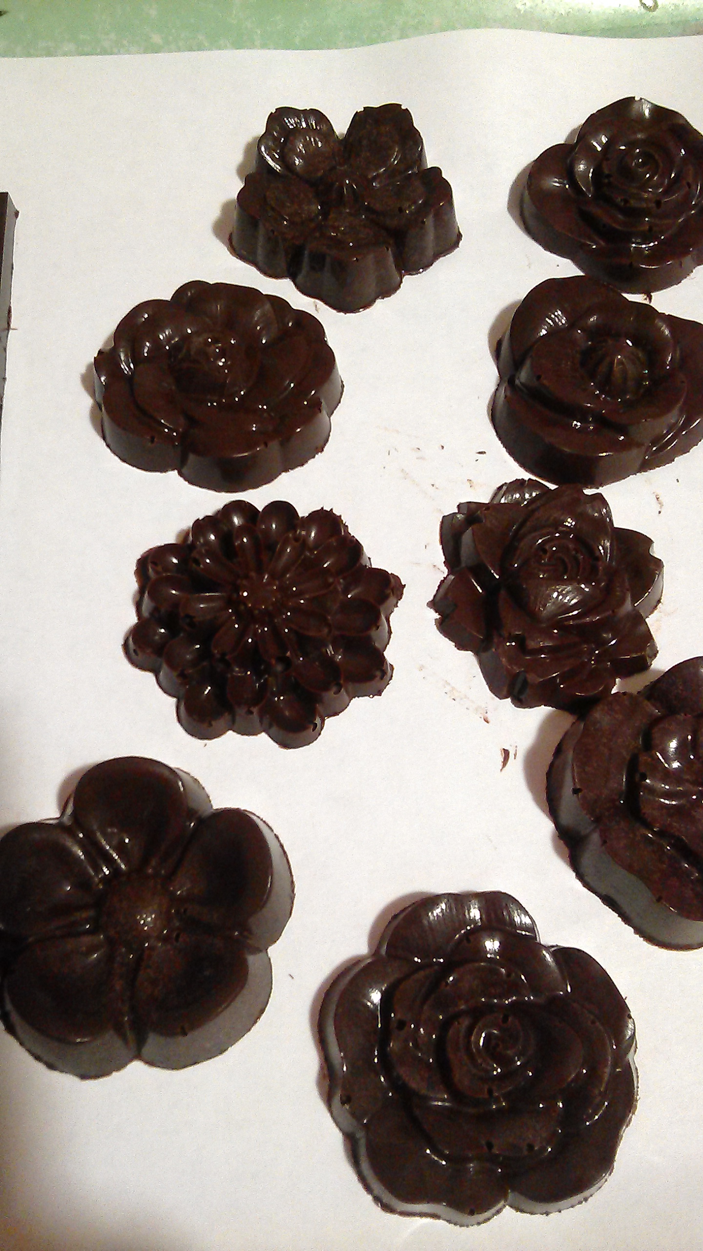 В общем случае нам необходимо добавить столько каллет к разогретому до +45 шоколаду, чтобы в момент, когда последние остатки каллет будут едва видны при помешивании, температура массы упала ниже критической (т.е. температуры разрушения кристаллов 5-го типа). Для темного шоколада это примерно 34,5 градуса, для молочного 33.