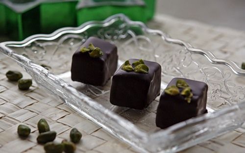 Шоколадные конфеты с начинкой из белого и черного ганаша и фисташек